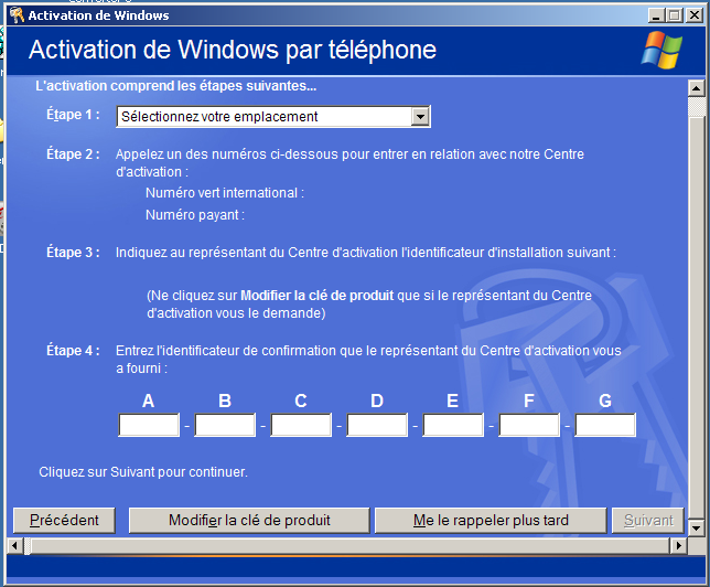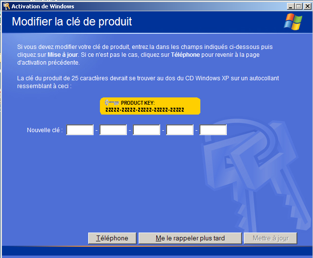 Changement de Clef produit sous Windows XP