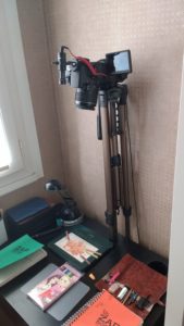 Ma dame dessinant fort bien, et souhaitant filmer son travaille, j’ai mis en place l’un des Canon 650D comme illustrer ci-dessous. Ma fille a voulu faire pareil. Reste à réfléchir sur le mode de diffusion 🙂